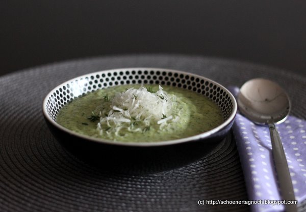 Ihr wollt die Zucchini möglichst pur verarbeiten? Dann ist die Zucchini-Suppe mit Parmesan und Thymian das richtige für euch. Wenige Zutaten, simple Zubereitung, unspektakuläres Aussehen – aber hocharomatisch!
